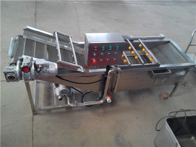 大型蔬菜清洗機的工作原理有很多客戶都不明白,下面就讓我接受一下,該機采用氣泡翻滾,沖刷,噴淋技術,物料由人工或者提升機代替,當物料進入到清洗機內,由鼓風機通過管道輸送讓水槽里面的水達到翻騰的狀態(tài),模擬手工清洗,對蔬菜表皮不會沒有損壞,清洗在清洗的過程中,水槽旁邊有溢水口可將蔬菜上面的雜草、漂浮物流到溢水口,溢水口上端設有過濾網,水槽里面的水可循環(huán)利用,大大的為客戶節(jié)約了水,再由輸送網帶提升到出口,網帶可采用變頻調速,快慢可調,在出口上端設有二次噴淋裝置,可給物料進行二次清洗,把蔬菜清洗干凈,為下一道工序做好準備工作。