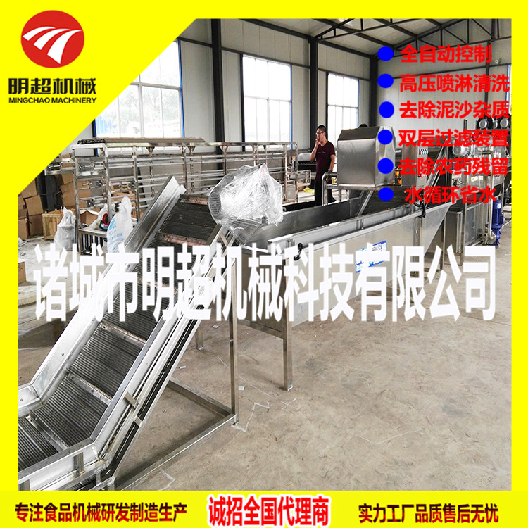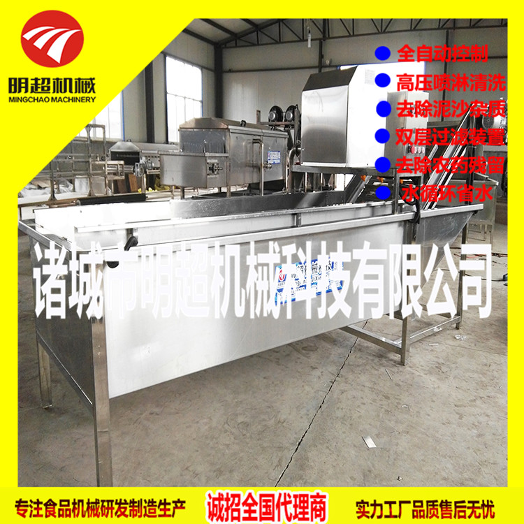 蔬菜分為根莖類和葉菜類,那么在這些根莖蔬菜和葉類蔬菜里面,一種蔬菜清洗機(jī)能全部清洗嗎?這是很多前來(lái)咨詢客戶的心聲,都想讓設(shè)備做到完好,什么蔬菜都能清洗,這個(gè)我想大家心里都有數(shù),有這個(gè)想法是好的,當(dāng)然,在這里,也要看客戶的需求,晨熙機(jī)械可以根據(jù)客戶的要求,為您單獨(dú)定制清洗設(shè)備,那么在這里就介紹一下根莖類的蔬菜清洗機(jī),顧名思義根莖類的蔬菜就是針對(duì)土豆、紅薯、蓮藕、山藥、中藥材、胡蘿卜、番薯、芋頭等等進(jìn)行去皮或者不去皮清洗,這些要求都是根據(jù)客戶的需求生產(chǎn)的,根莖類去皮清洗的話,需要用同一種設(shè)備,但是毛輥的硬度要高,能將根莖類的蔬菜皮磨掉,再通過(guò)高壓噴淋管道進(jìn)行清洗,如果只是單純的清洗根莖類的,需要看物料上面的泥土是新鮮的還是堅(jiān)硬的,如果是堅(jiān)硬的,需要在根莖類毛輥清洗機(jī)前面加上浸泡機(jī),通過(guò)浸泡將根莖類蔬菜上面的泥土松軟,再通過(guò)網(wǎng)帶輸送到毛輥清洗機(jī)上面,這樣毛輥去皮清洗機(jī)就相對(duì)于簡(jiǎn)單了。后續(xù)可配套提升機(jī)→風(fēng)干瀝水→切絲塊機(jī)→漂燙機(jī)→冷卻機(jī)→脫水→烘干或者包裝