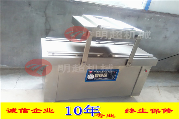 采用氣動元件驅動輸送履帶和真空室,以汽缸代替?zhèn)鹘y(tǒng)的電機,通過齒輪,齒條傳動定位,真空室采用高密度材料制作的V形密封條,保證設備在日常工作中的密封性、和材料的耐壓、耐磨性。設備主體采用304不銹鋼材料,機器的真空,壓袋,封口,冷卻,等待的時間均可調節(jié);工作室角度可根據(jù)需要在0-30度范圍進行無級調節(jié),真空度小于等于200PA,壓縮空氣大于等于0.5MPA,電源380V,總功率2.0KW,外形尺寸800*700*1350MM。 |