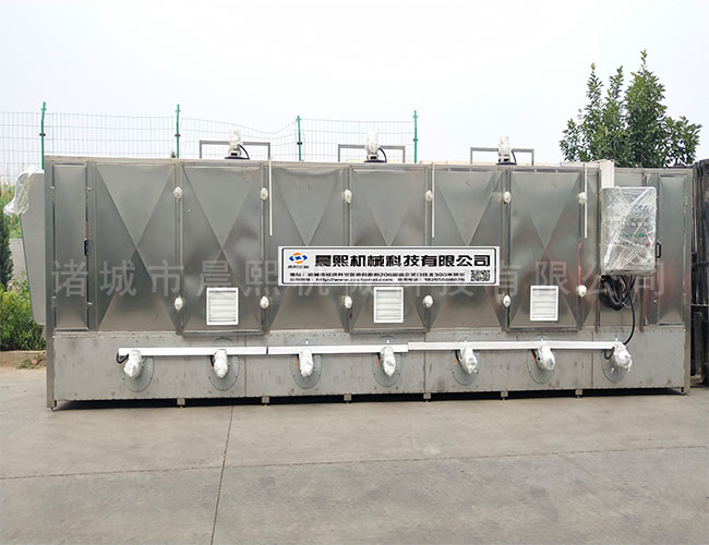 三、瀝水:將清洗好的香蔥,用香蔥風(fēng)干機進行風(fēng)干瀝水,需要用到平行的網(wǎng)帶,如果用翻轉(zhuǎn)的香蔥很亂,用平行的香蔥不亂,在整個清洗到風(fēng)干瀝水過程中,都采用的是一條網(wǎng)帶。