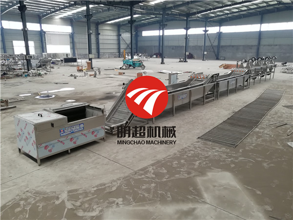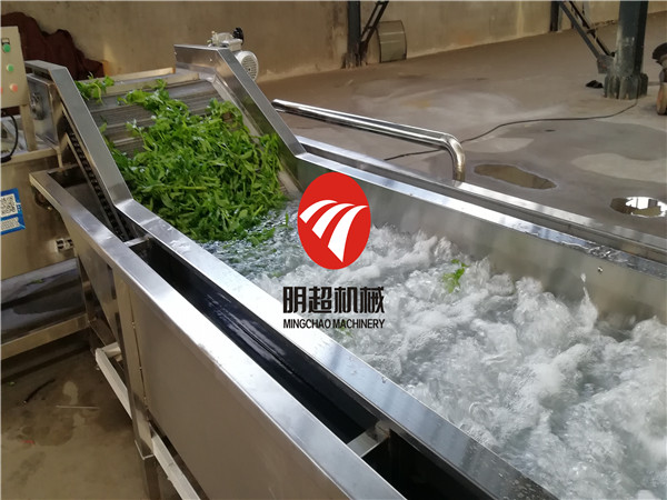 5、蔬菜清洗殺菌機(jī):又稱氣泡清洗機(jī),可用于于蔬菜、水果、水產(chǎn)品等顆粒狀、葉狀、根莖類產(chǎn)品的清洗等果蔬,設(shè)備配備有循環(huán)水泵和過(guò)濾水箱,實(shí)現(xiàn)清洗用水循環(huán)使用,節(jié)約用水,蔬菜在進(jìn)入清洗機(jī)后,在氣泡的作用下做翻滾狀態(tài),從而達(dá)到清洗的目的,而在出料口中高壓水噴淋頭,可對(duì)蔬菜再次進(jìn)行清洗。