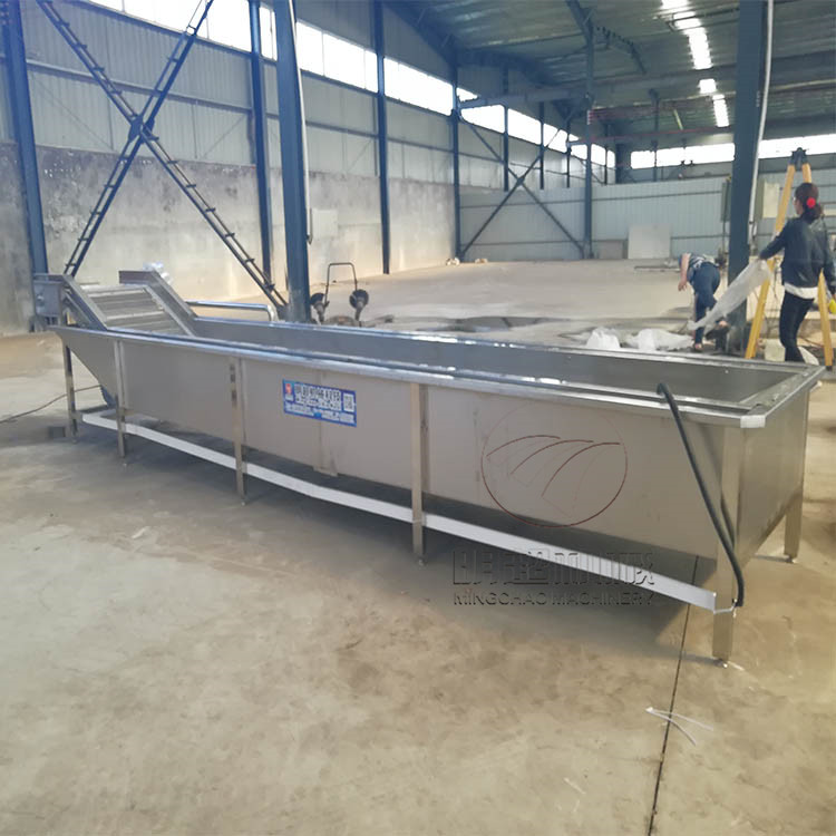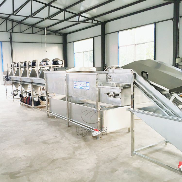3、紅薯清洗機(jī):通過浸泡的方式,將紅薯和紅薯表面的泥沙分離,這樣有效保護(hù)紅薯表面沒有傷痕,在通過鼓泡的方式將紅薯清洗一遍,再由網(wǎng)帶輸送到下一道工序,該機(jī)水可循環(huán)利用,操作簡單,整機(jī)采用sus304不銹鋼材質(zhì)制造,完全符合對食品衛(wèi)生的需求