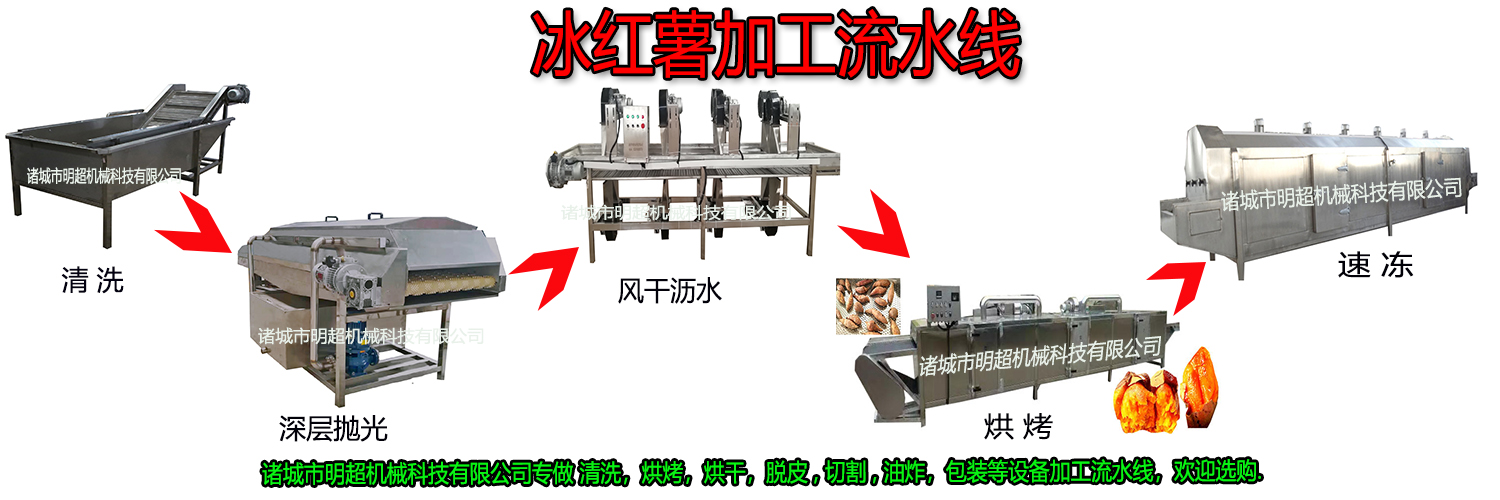 經(jīng)過清洗好的紅薯,進(jìn)入紅薯烘烤設(shè)備烘烤好的紅薯直接進(jìn)入速冷凍8小時,下面就來介紹一下冰紅薯加工操作流程:
